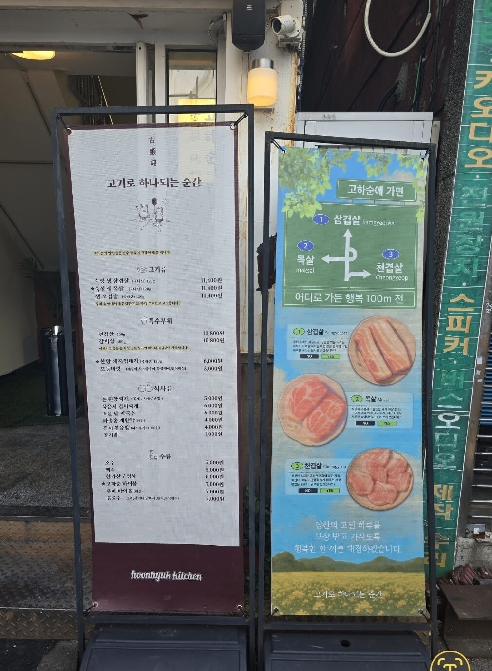고기집이 2 층이라 올라가야 하는데요 연예인들 사진 그리고 웨이팅 의자까지 있네요. 저의는 미리 예약을 하고 5 시에 갔는데 근방 테이블이 다 찼어 미리 예약이 필수 있것 같아요