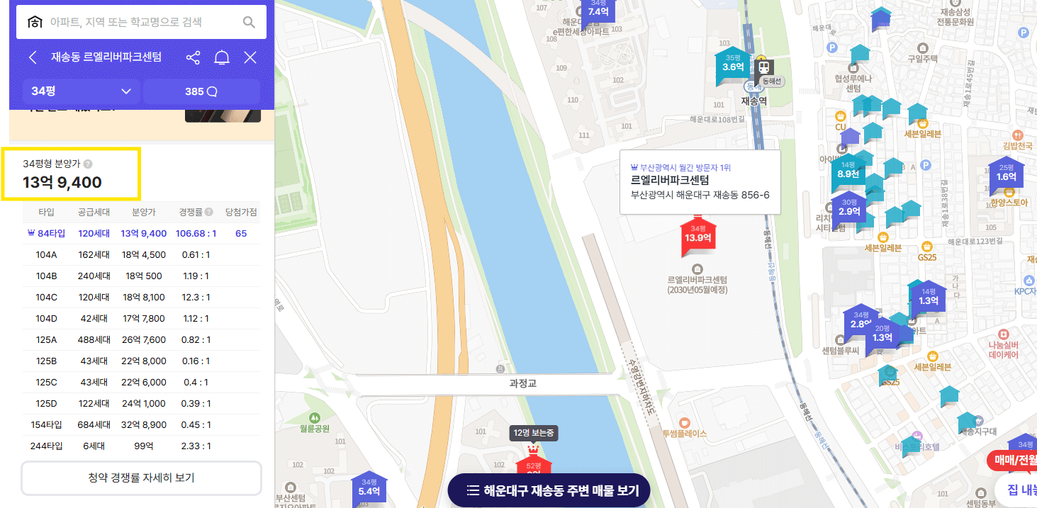 르엘리버파크센텀의 34평형의 분양가가 13억 9,400입니다. 최근 상당한 관심 속에 분양을 하였고 반응이 좋은 것 같습니다.