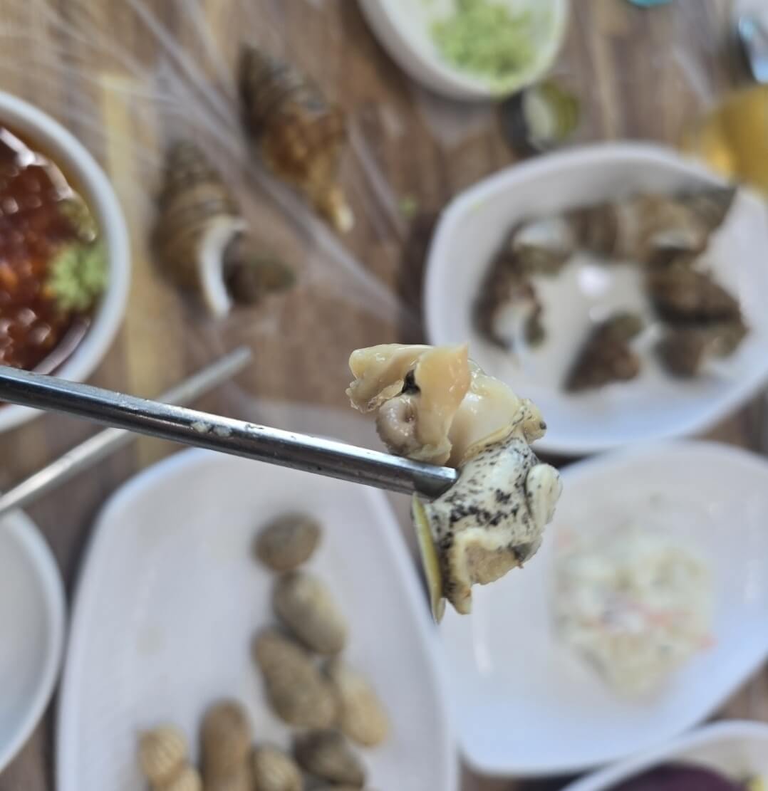 밑반찬들이 줄줄이 나왔습니다. 소라가 쫄깃쫄깃하여 맛있었습니다. 시원한 맥주와 잘 어울렸는데 여러분도 한번 드셔보세요