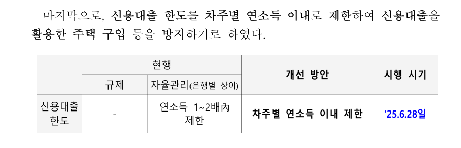 신용대출 한돌를 연소득이내에서만 신용대출을 허용하여 신용대출을 활용한 주택 구입등을 방지했습니다.
